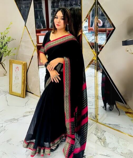 The Nakshi weaving technique featured in this saree showcases the rich artisanal craftsmanship of Bangladesh, adding a touch of tradition to your wardrobe. The unstitched blouse piece allows you to tailor the blouse to your preferred style and fit.