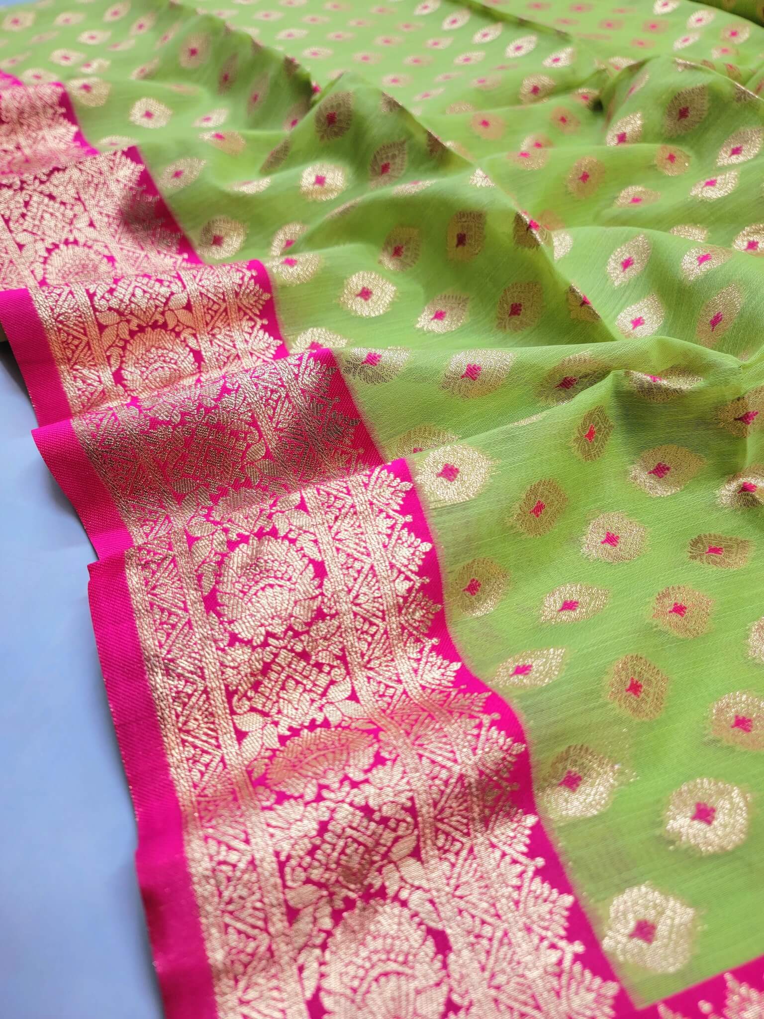 Crafted from premium quality cotton, this saree offers exceptional comfort and breathability, making it ideal for both casual and formal occasions.