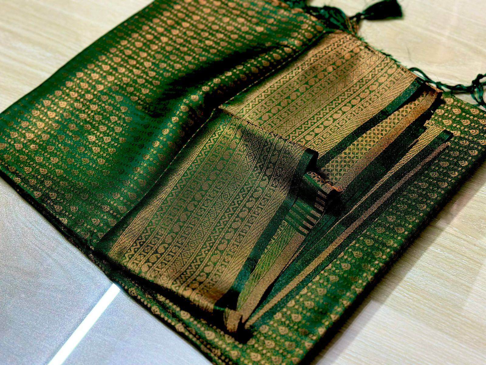 - Regular Airing: Every few months, unfold the saree and air it in a shaded area to prevent any fungal growth and retain its freshness.