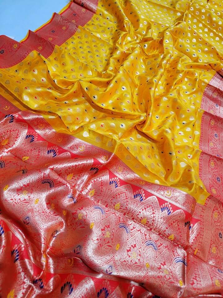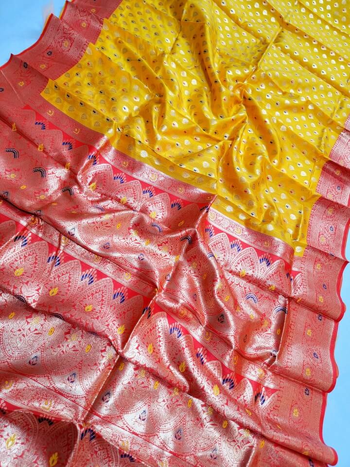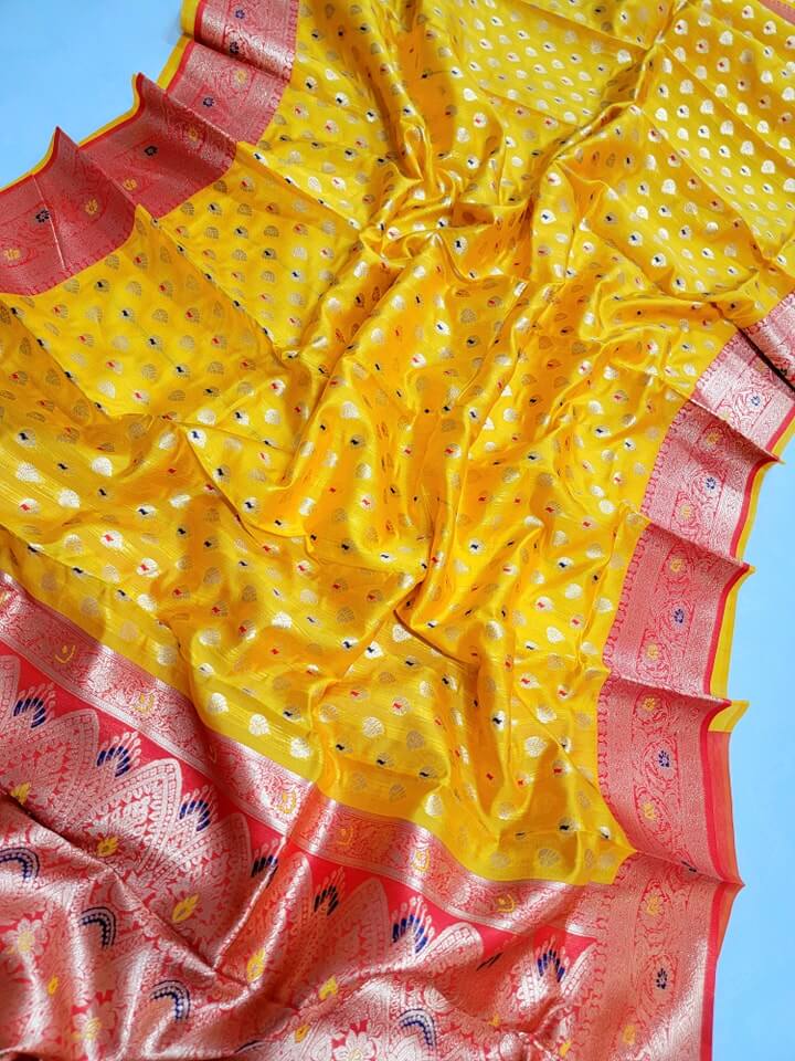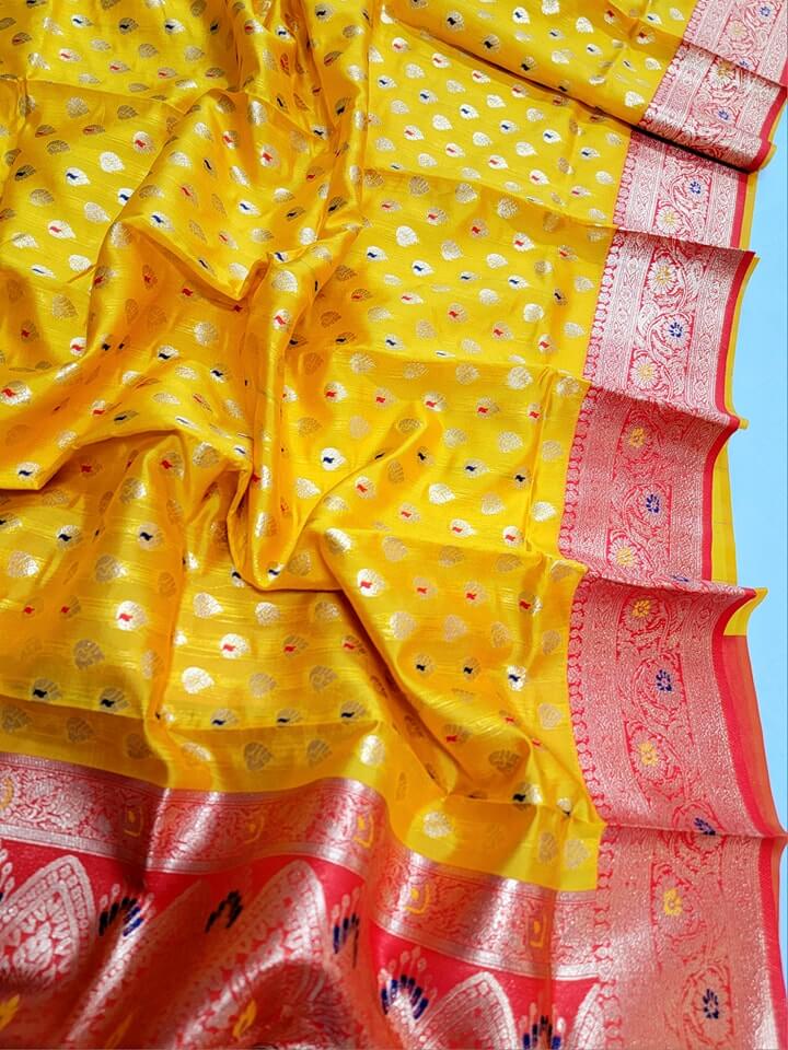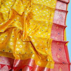 - Intricate Designs: Featuring traditional weaving techniques, the saree showcases classic designs that have been passed down through generations.